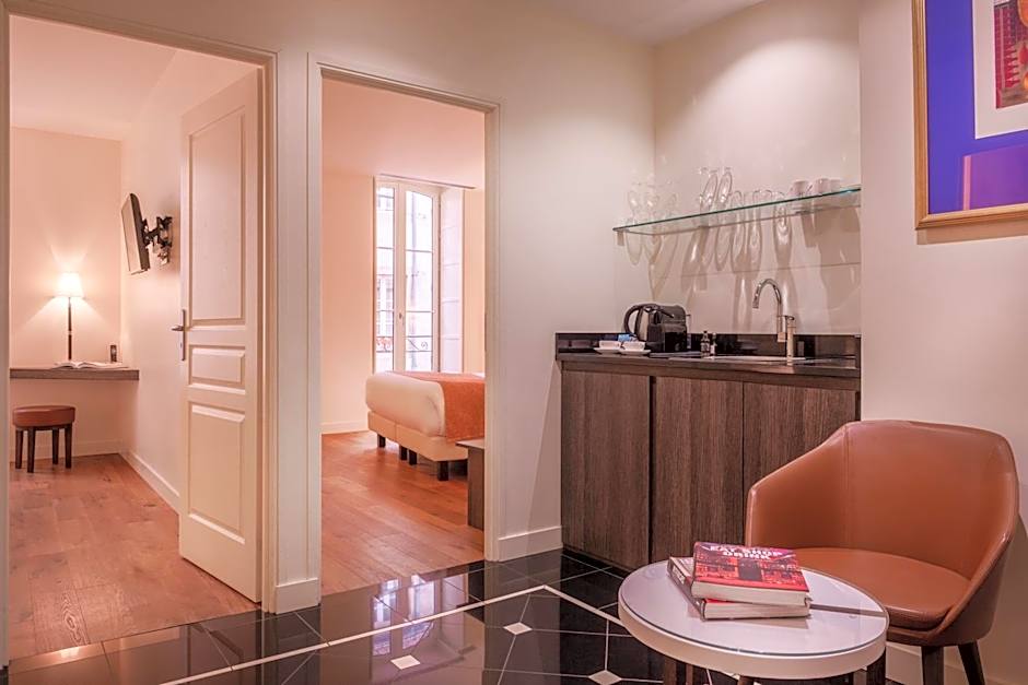 Located above our wine shop "JabCo Fine Wine", 164 feet from the reception. This family room features a mini-bar, seating area and bathrobe.
